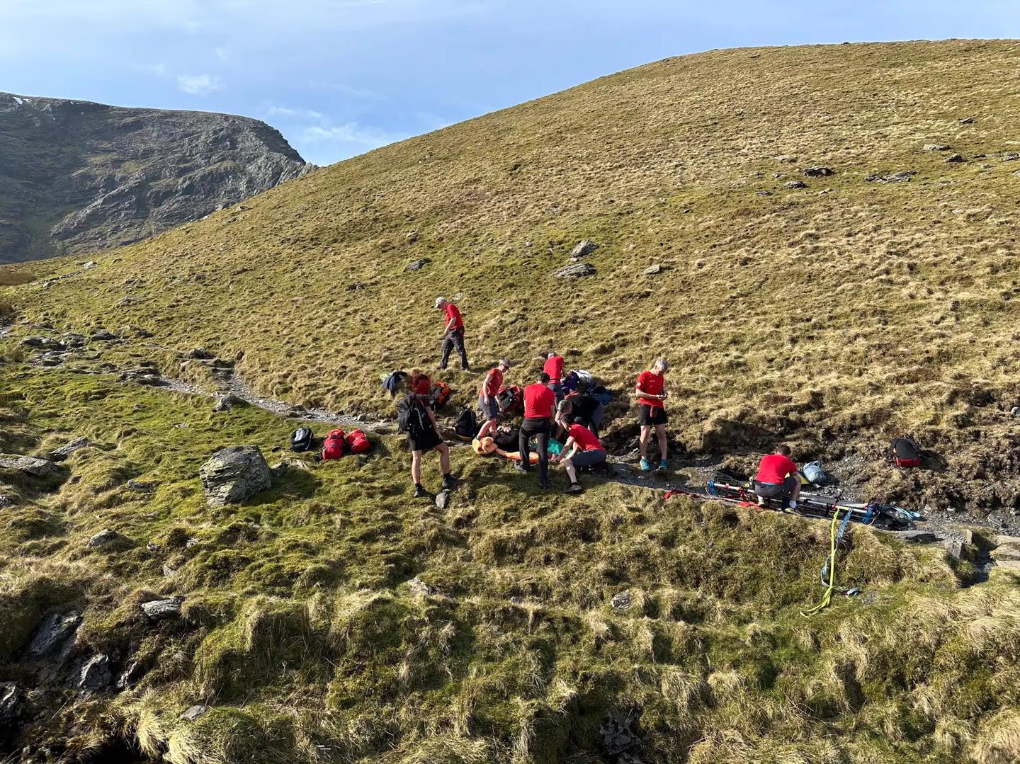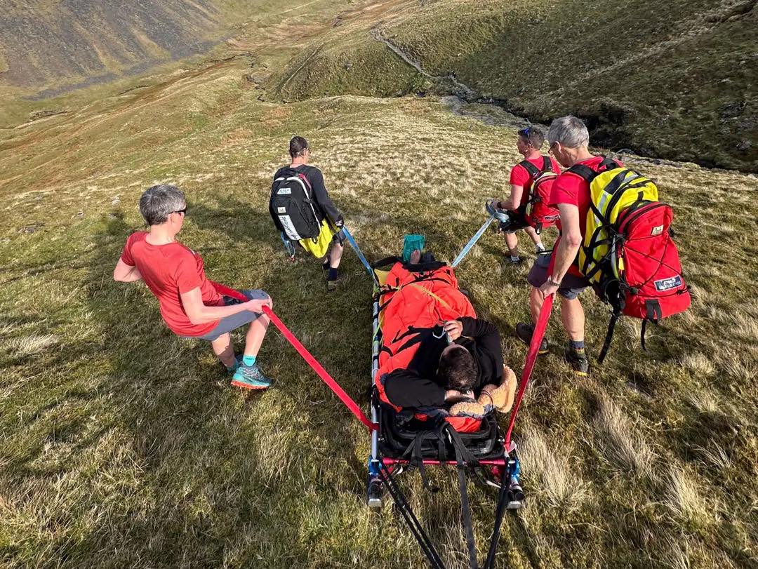 The team were contacted by Keswick MRT who requested assistance with the rescue of a 34-year-old man who had dislocated their kneecap whilst descending the path from Scales Tarn. As Keswick were faced with a length stretcher carry, they contacted the Team for some extra bodies to assist. A small hill party was sent and met up with the Keswick team as they were starting the descent back to road at Mousethwaite. Please see Keswick’s post for more information.